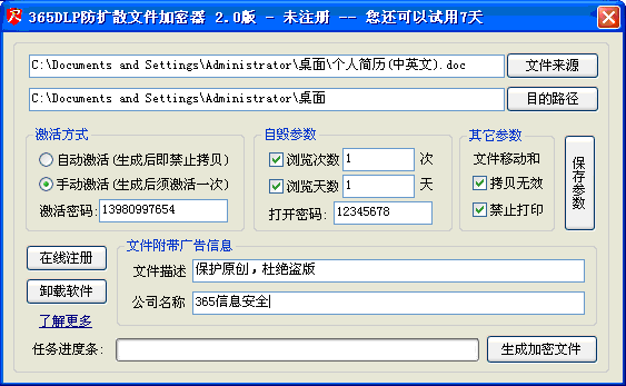 365外發防擴散系統說明書 一、產品概述 這是一款對文件外發進行加密的安全軟件,使用其可防止文件在外發及