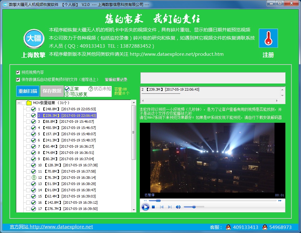 制的視頻文件,是碎片級的文件恢復軟件,能自動識別各個碎片,進行重組恢復。大疆無人機拍攝的高清視頻文件
