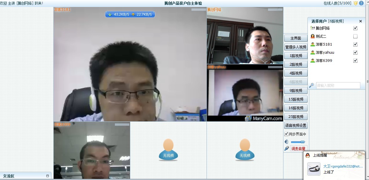 騰創網絡多人視頻會議系統主要功能 用戶列表 用戶列表顯示當前所有參加會議的人員。 * 主持人可通過右擊菜