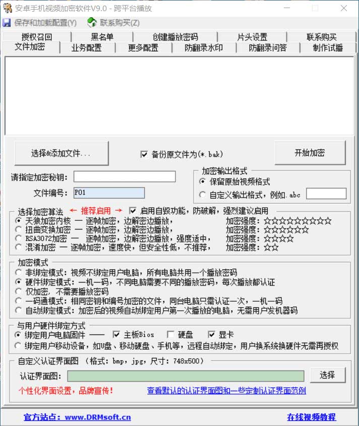 可以加密各種視頻音頻格式文件(wmv,avi,mpg,rm,rmvb,mp4,flv,vob等),加密后的視頻可以綁定用戶安卓手機