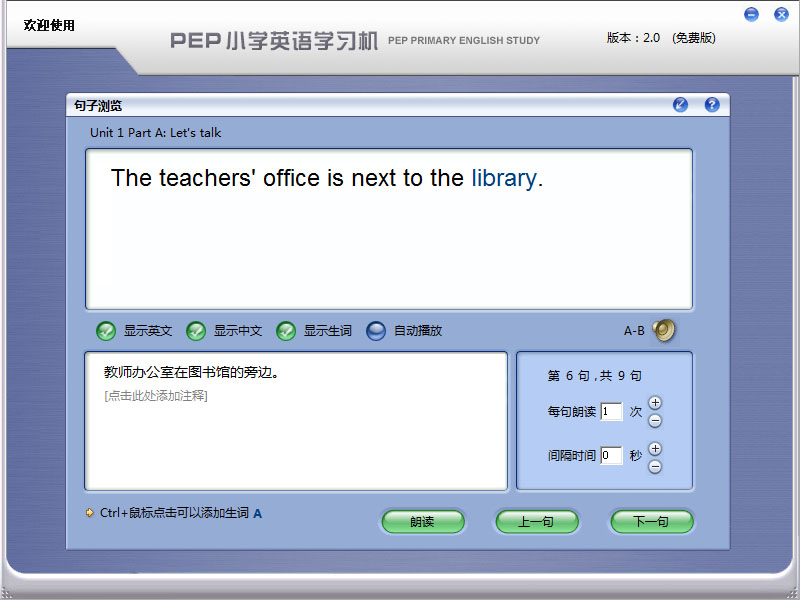 《PEP小學英語學習機》(三至六年級全冊版)是一款完全免費的英語學習軟件,它同步于最新版本《PEP小學英語