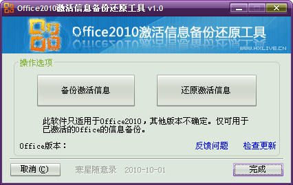 Office2010備份還原激活工具v1.0 綠色免費版|Office2010備份還原激活工具