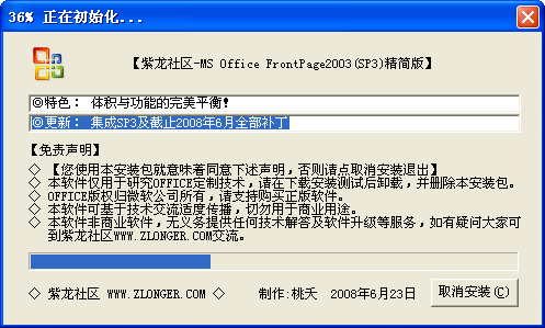 1、源文件采用微軟原版OFFICE2003企業(yè)版ISO里面的FrontPage2003,集成SP3補(bǔ)丁及截至08年6月所有補(bǔ)丁。