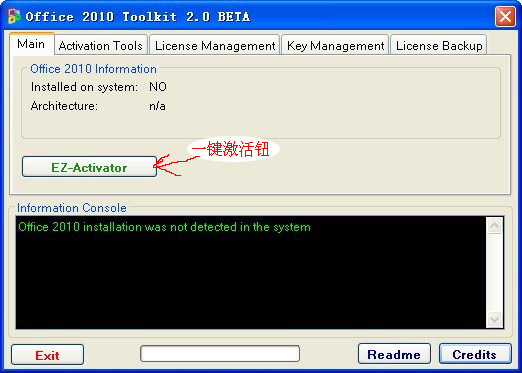 綠色國外軟件,自動檢測系統是否安裝Office2010,而且設有一鍵激活按鈕,可一鍵激活Microsoft Office Pro 2010 ,非常方便!本人不用Office2010,軟件未測試。可以激活成功的請留言分享