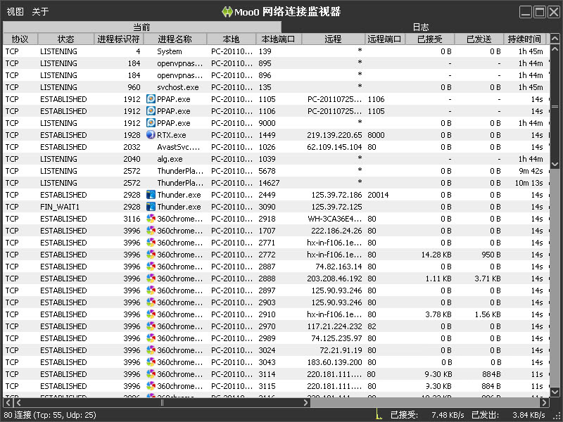 TCP/UDP監(jiān)視工具(Moo0 ConnectionWatcher)V1.52 綠色中文便攜版|