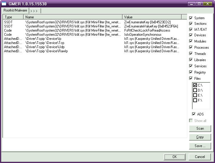 隱藏進程服務監控分析工具(Gmer)1.0.15.15640 英文綠色免費版|