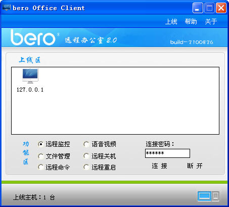 bero office遠程辦公室是款反彈的遠程控制軟件。它可以輕松管理您企業內部的辦公電腦實現遠程辦公,監控。非常適合個人、公司和家庭用于遠程維護、遠程協助和遠程管理。