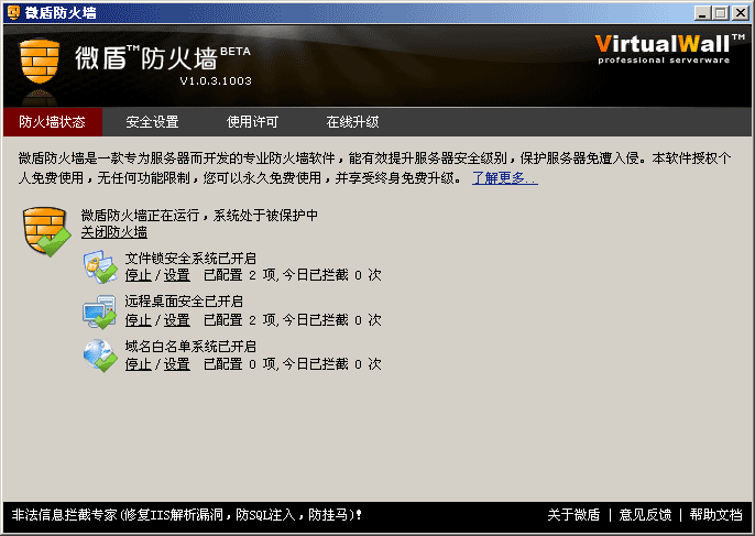 微盾防火墻V1.0.5.1005 BETA 中文安裝版|