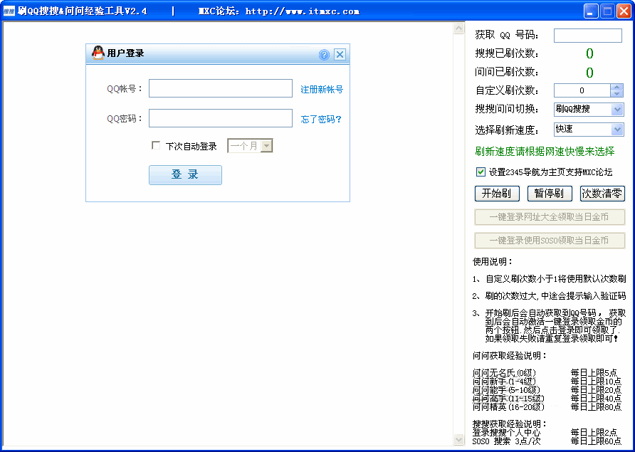 一鍵刷QQ搜搜&問問經驗工具V2.4 綠色免費版|