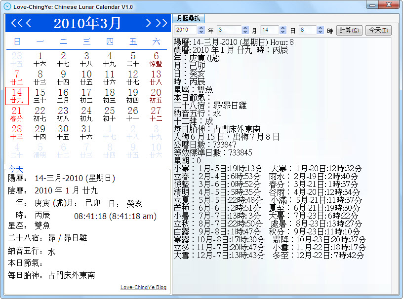 Chinese Lunar Calendar日歷程序提供西方占星術V1.0綠色免費版|
