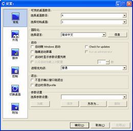 一款來自德國的虛擬桌面工具。可以讓你擁有多個虛擬桌面,這樣你就再也不會覺得屏幕上的位置不夠用了。不同的桌面還可以設置不同的壁紙和顏色,點擊系統(tǒng)上的托盤圖標可以很方面地在各個桌面之間來回切換。虛擬桌面數(shù)目最多可達20 個。另外,還具有桌面幻燈片,桌面管理器(可以把A桌面的任務移動到B桌面),全屏等附加功能,此外還可以自定義規(guī)則。