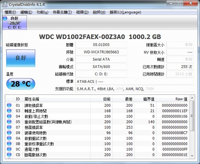 磁盤狀態檢測 CrystalDiskInfo4.1.4.0|