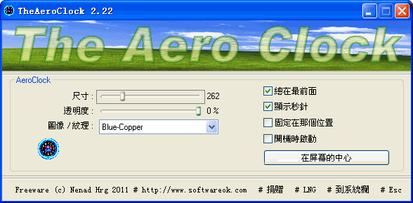 win7/xp透明桌面時鐘(TheAeroClock)V2.22 中文綠色版|