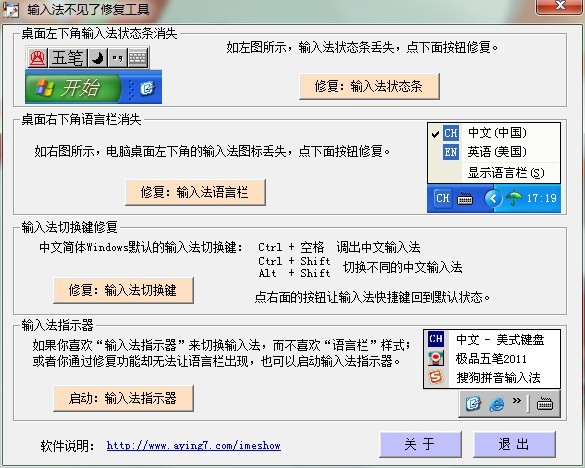 輸入法修復(fù)工具(輸入法不見(jiàn)了修復(fù)工具)V1.7去廣告綠色版|