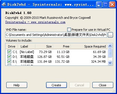 disk2vhd能夠運(yùn)行在Windows XP SP2,Windows Server 2003 SP1或更高版本的系統(tǒng)之上,并且支持64位系統(tǒng)。但是需要注意的是受虛擬化平臺(tái)產(chǎn)品對(duì)VHD的限制,比如 Microsoft Virtual PC僅支持最大 127G 的虛擬磁盤(pán)(VHD),那么你所轉(zhuǎn)換的 VHD 則不能高于這個(gè)限制。