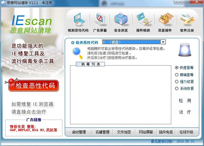 惡意網站清除器(Iescan)2010 V12.1綠色特別版|