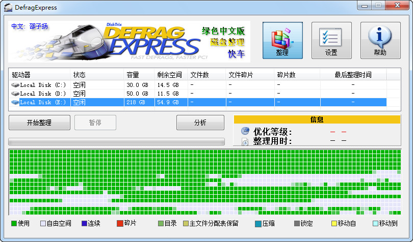 DefragExpress1.49 漢化綠色版|(磁盤碎片整理)