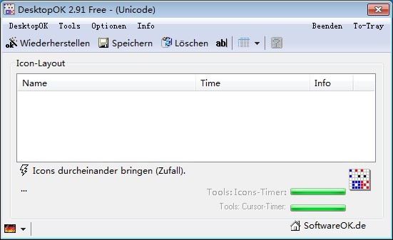 DesktopOK是一款桌面圖標布局保存的小工具,可以設置自動保存,方便理順不太整潔的桌面,與Q-dir出自同門。