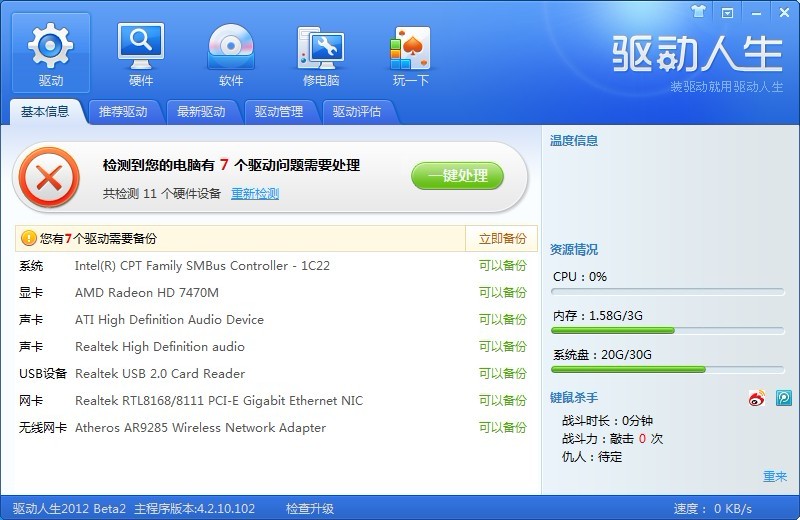 驅動人生2012版V4.3.11.107(帶網卡驅動)純凈版|