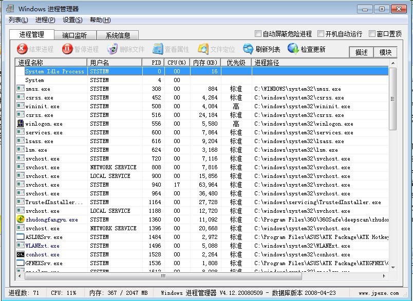 Windows進程管理器V4.12.20080509|