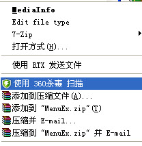 右鍵 “使用360殺毒 掃描”MenuEx.dll最新版|