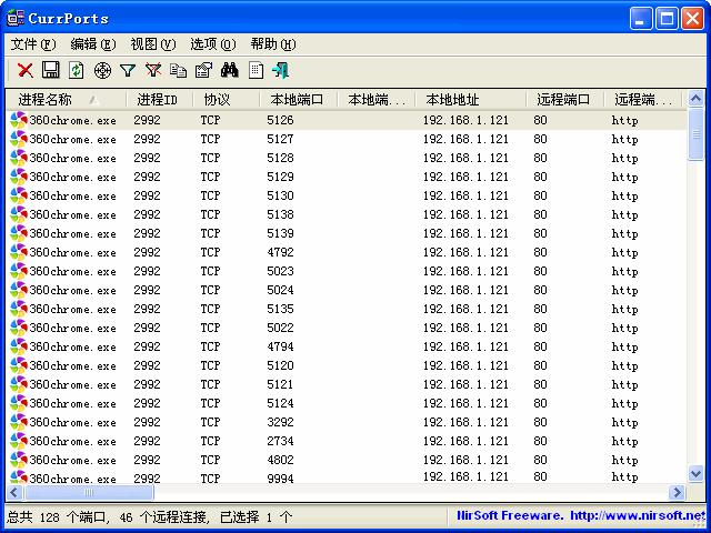 CurrPorts顯示當(dāng)前在本地計(jì)算機(jī)上打開的所有TCP/IP和UDP端口列表。對于列表中的每個(gè)端口,同時(shí)顯示打開了端口的進(jìn)程有關(guān)的信息,包括進(jìn)程名稱,完整的進(jìn)程路徑,進(jìn)程的版本信息(產(chǎn)品名稱,文件說明等),進(jìn)程的創(chuàng)建時(shí)間,和創(chuàng)建進(jìn)程的用戶。