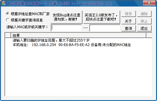 MAC地址查詢掃描器v3.2 簡體中文綠色免費版|