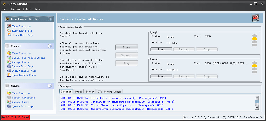 Tomcat和MySQL配置管理工具(EasyTomcat)0.8.0.0 免費版|