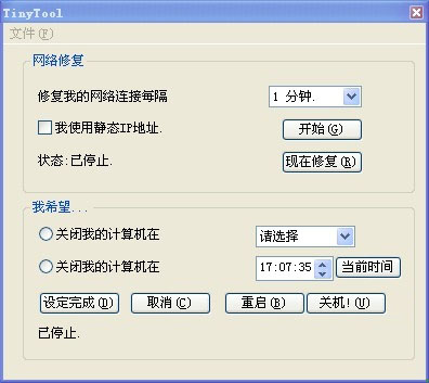 TinyTool(支持修復網絡連接和定時關機小工具)V1.0.0.1綠色版|