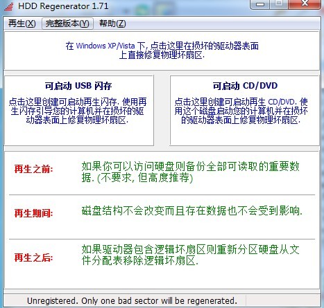 HDD Regenerator(硬盤壞道屏蔽修復(fù)工具)V1.71 綠色漢化版|