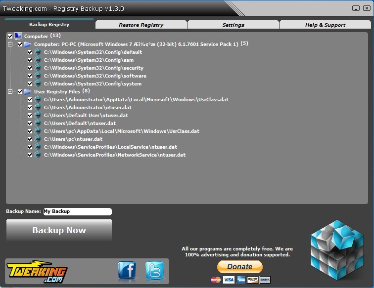 注冊表備份大師(Registry Backup)1.3 官方版|