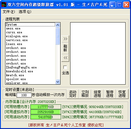 雙六空間內(nèi)存超級(jí)釋放器V1.01綠色免費(fèi)版|