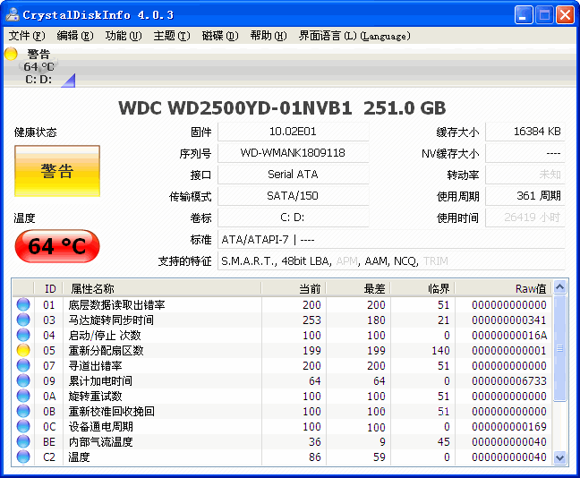 硬盤健康狀況檢測工具(CrystalDiskInfo)V5.1.0多語中文便攜版|