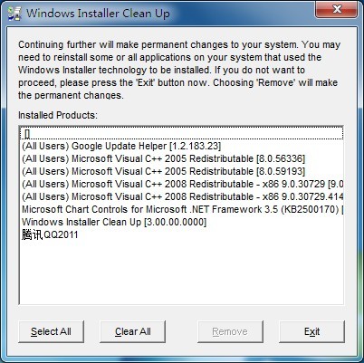 如果您在安裝或刪除程序的時(shí)候遇到了Windows Installer方面的問(wèn)題,用 Windows Installer Cleanup Utility(Windows Installer 清理實(shí)用程序)刪除以前程序的安裝信息后再試就沒(méi)問(wèn)題了.如 Office 和 Visual Studio 無(wú)法順利卸載,也無(wú)法安裝的問(wèn)題,用了它之后都解決了,可以順利的重新安裝想要的程序。