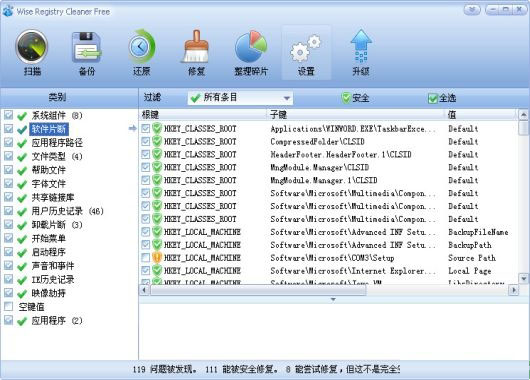 Wise Registry Cleaner Free(注冊表清理)V7.17綠色版|