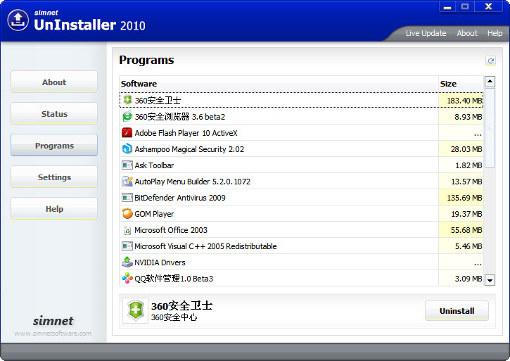 Simnet UnInstaller 20102.4.3.8 綠色單文件版|