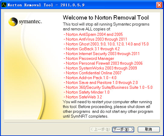諾頓卸載輔助工具 Norton Removal Toolv2012.0.5.15 官方版|